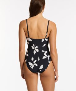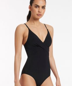 Jets Women’s One Piece Swim Joali Tie Front Plunge Surfsuit – Black