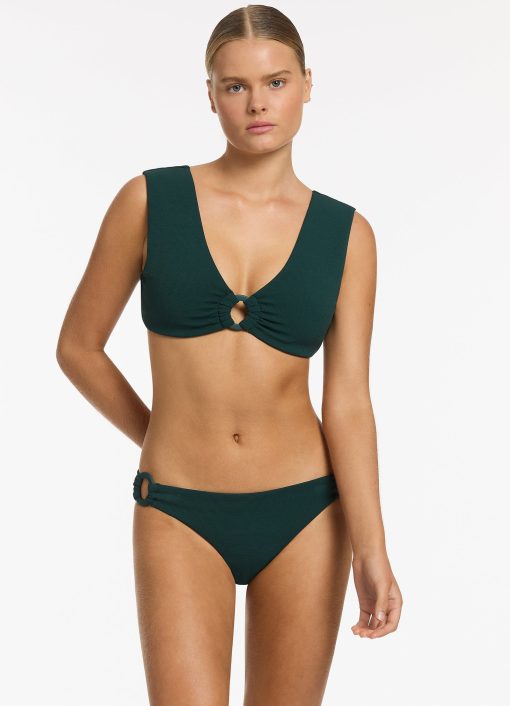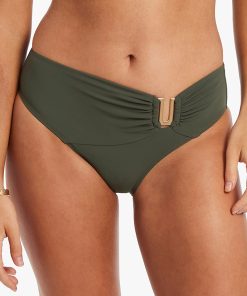 Jets Women’s Isla Rib Trim Side Hipster Bikini Bottom – Forest