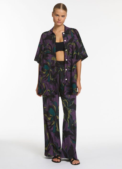 Jets Women’s Resortwear Midnight Tropical Short Sleeve Shirt – Amethyst
