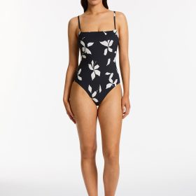 Jets Women’s One Piece Swim Joali Tie Front Plunge Surfsuit – Black