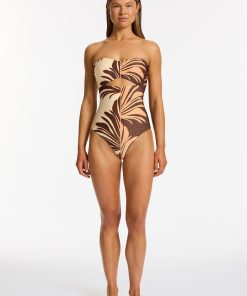 Jets Women’s One Piece Swim Dahlia Palm Cut Out Bandeau One Piece – Chocolate | Chocolate