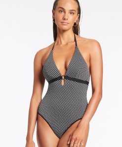 Jets Women’s One Piece Swim Animale D_dd Trim One Piece – Cream