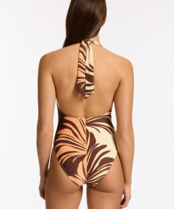 Jets Women’s One Piece Swim Dahlia Palm Cut Out Bandeau One Piece – Chocolate | Chocolate