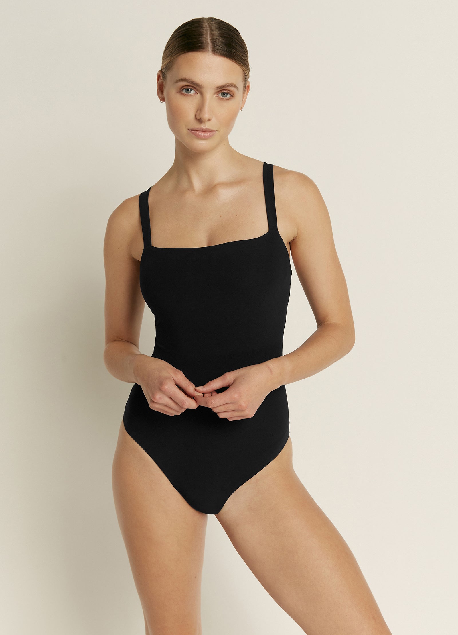 - Straight square neckline