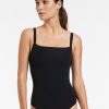 - Straight square neckline